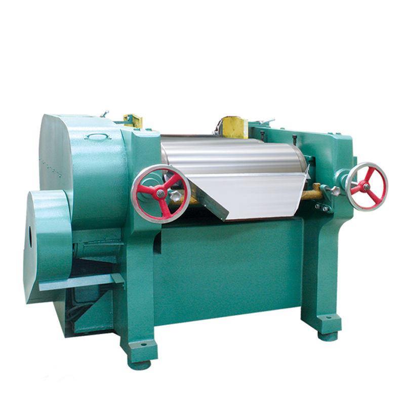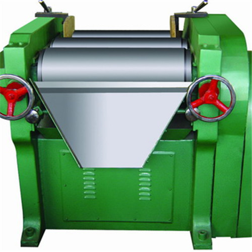 工作時間快、慢輥調(diào)節(jié)到適當(dāng)位置,啟動機器,然后將需要研磨的漿料加入中輥與慢輥之間銅刀處,漿料經(jīng)過中、慢輥表面擠軋后,由中輥帶給快輥,再由緊貼表面的出料刮刀予以刮下,通過裝有欄板的刀板,流入盛料筒,由此構(gòu)成整個研磨的過程。